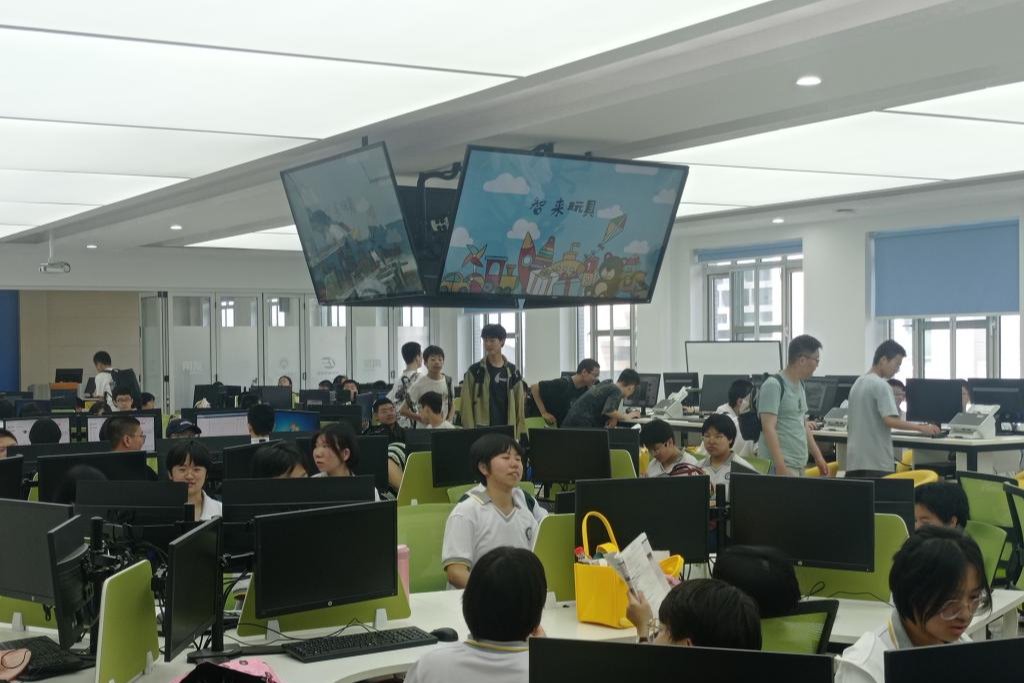 6月8日上午,430多名来自济钢中学的学生来到我校圣井校区参观研学。为提升学生们对数字经济时代下经济管理运行环境的直观体验,学校把参观数智化商科实验室作为此次研学活动的重要环节之一。中心技术部蔡伟波老师带领来自济钢中学的师生和家长代表参观了位于逸夫楼四层的智能商科实验室群。