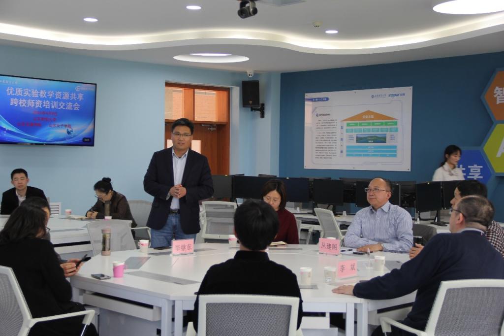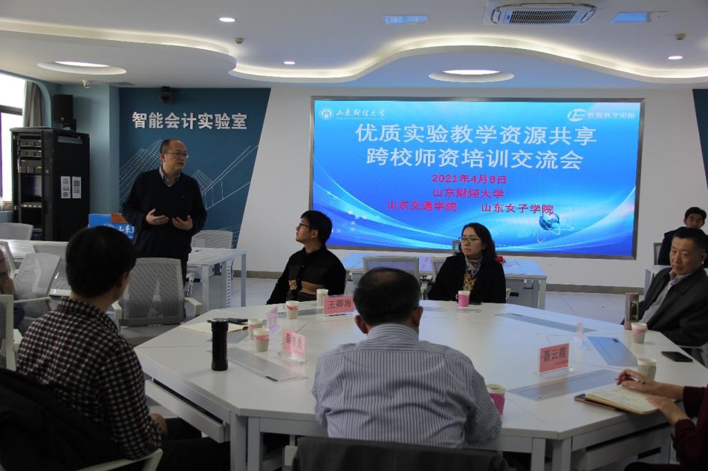 2021年4月8日,实验教学中心在燕山校区举办了第三期优质实验资源共享跨校师资培训交流会。山东交通学院经济管理学院副院长聂云霞、山东女子学院工商管理学院副院长秦善勇一行共17人来访,工商管理学院毕继东、葛培波、夏兆敏老师,中心相关人员参加会议。