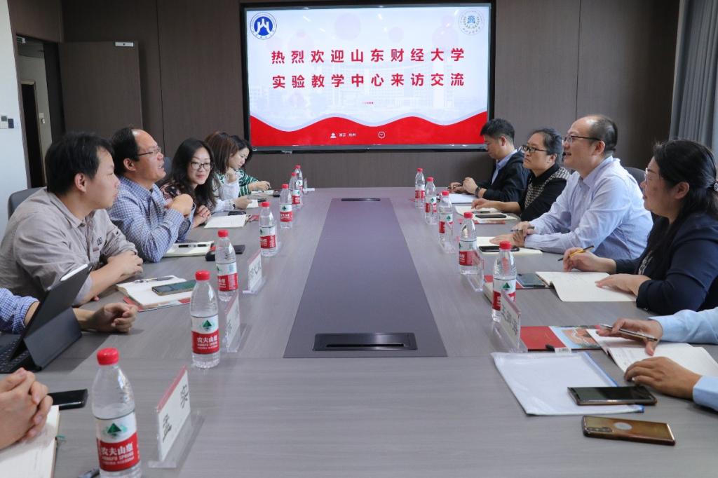 浙江工商大学实验室与资产管理处副处长吴遵义,教务处副处长邓戈威,会计学院副院长谢诗蕾热情接待了中心人员,详细介绍了浙江工商大学在实验室建设、实验室安全管理方面的经验做法以及数字化会计人才培养路径选择、校企合作开展财务智能决策课程开发、大数据工具场景化应用等布局措施。双方还就实验教师引培与激励制度,虚拟仿真项目经费筹措,实验教学数据共建共享,校企合作实习实践基地利用,数字化实验教材立项,实验室技术运维管理和技术人员工作安排,多校区实验教学运行管理等进行了深入探讨。会后,中心一行参观考察了下沙校区文科综合实验教学中心实验室。